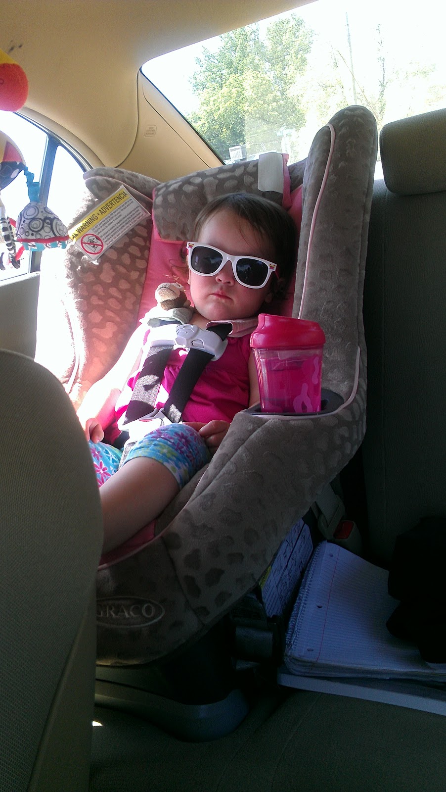 After the birthday party we went grocery shopping, during which we forgot a wallet and didn’t realize itย until we were done getting everything. Daniel ran home to get his wallet and before he got back the power randomly went out and they couldn’t check anyone out. We waited a little while, then headed home without any groceries. It was a weird series of events ๐ย Here Aurelia is, all tuckered out after a long, hot day. She also had a diaper fiasco which is why she’s wearing different pants ๐