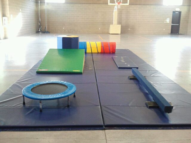 She kept trying to walk on the beam and by the end of the class she was walking across just holding one of my hands. We played with a parachute, did stretching, practiced the beginning of doing a bridge and did jumping and somersaults. She had a pretty tough time understanding the concept of somersaults. Wait, so I’m supposed to tuck my head under even though I’m going forward, and then go upside down? It was cute. 🙂 She did a good job following the teacher (my friend Kandis who is a fabulous gymnast) and I was so proud of her!