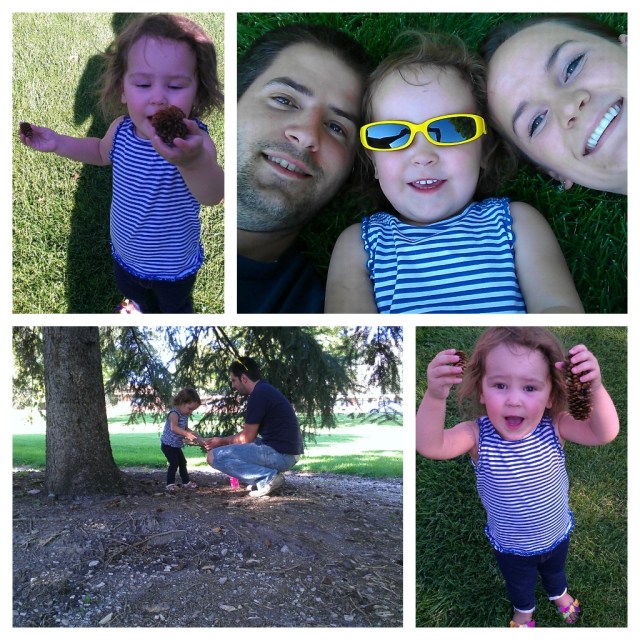 Oh and then here are some random pictures from one of our park outings at the end of the summer. Aurelia found a big pine cone and a little one and said they were “baby pine cone” and “daddy pine cone” 🙂