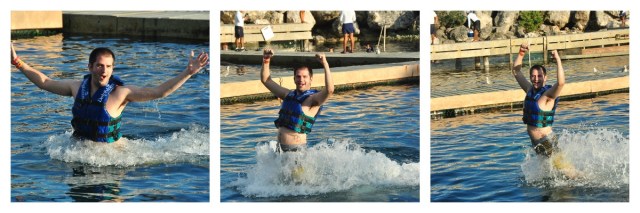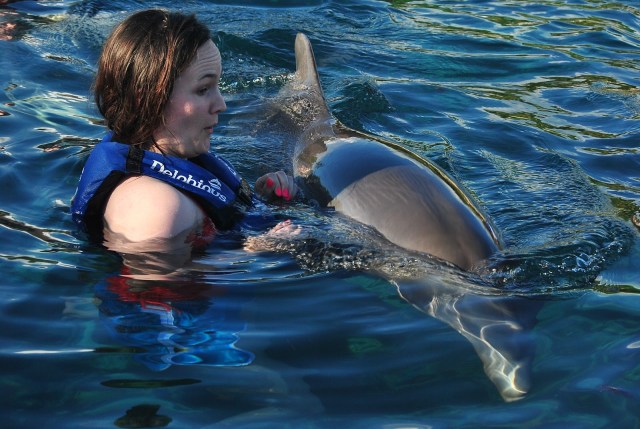 | I was a little nervous at first. Even though I’ve always wanted to swim with dolphins in the water they look a whole lot like sharks, something I’m pretty scared of. |