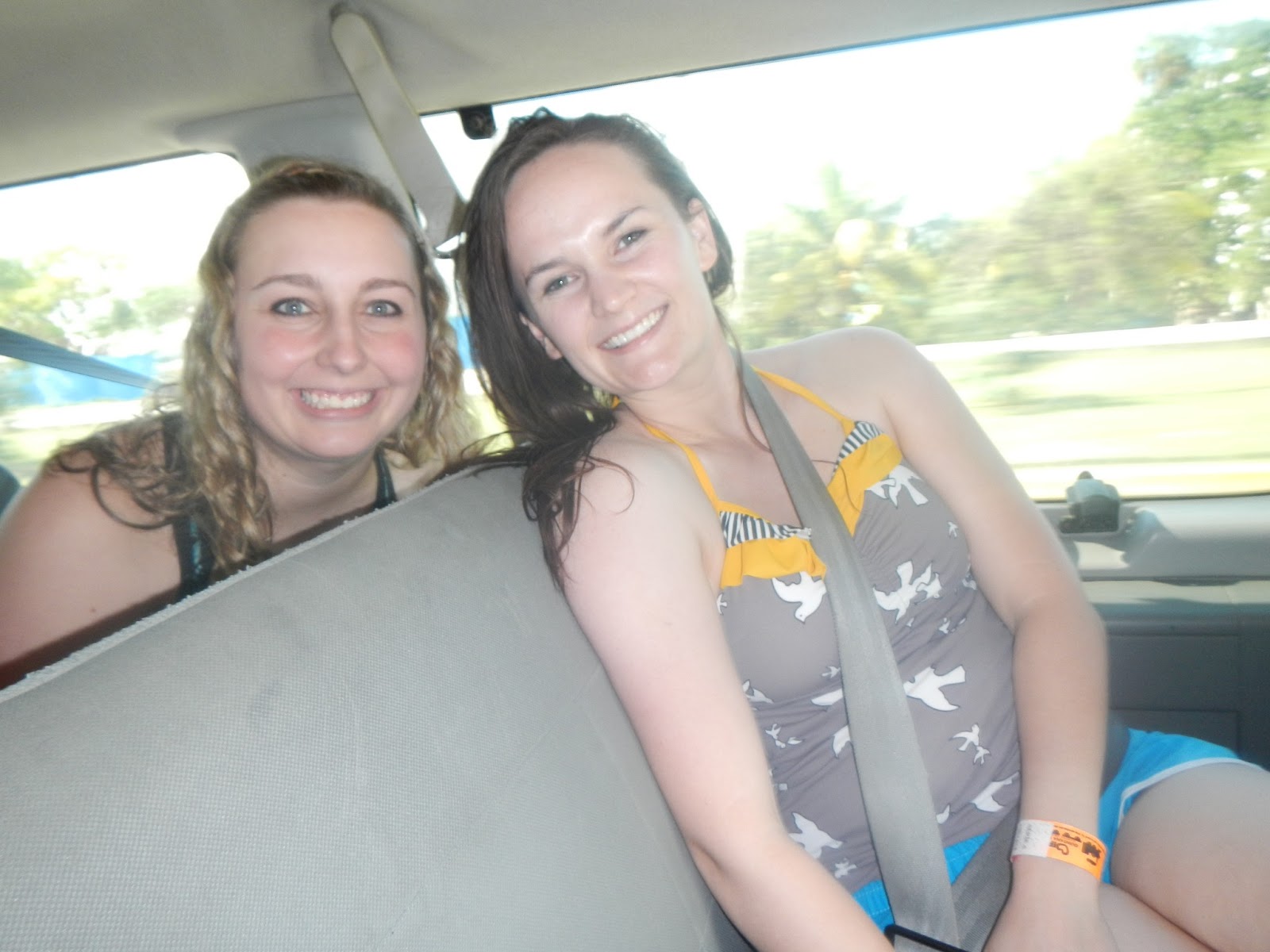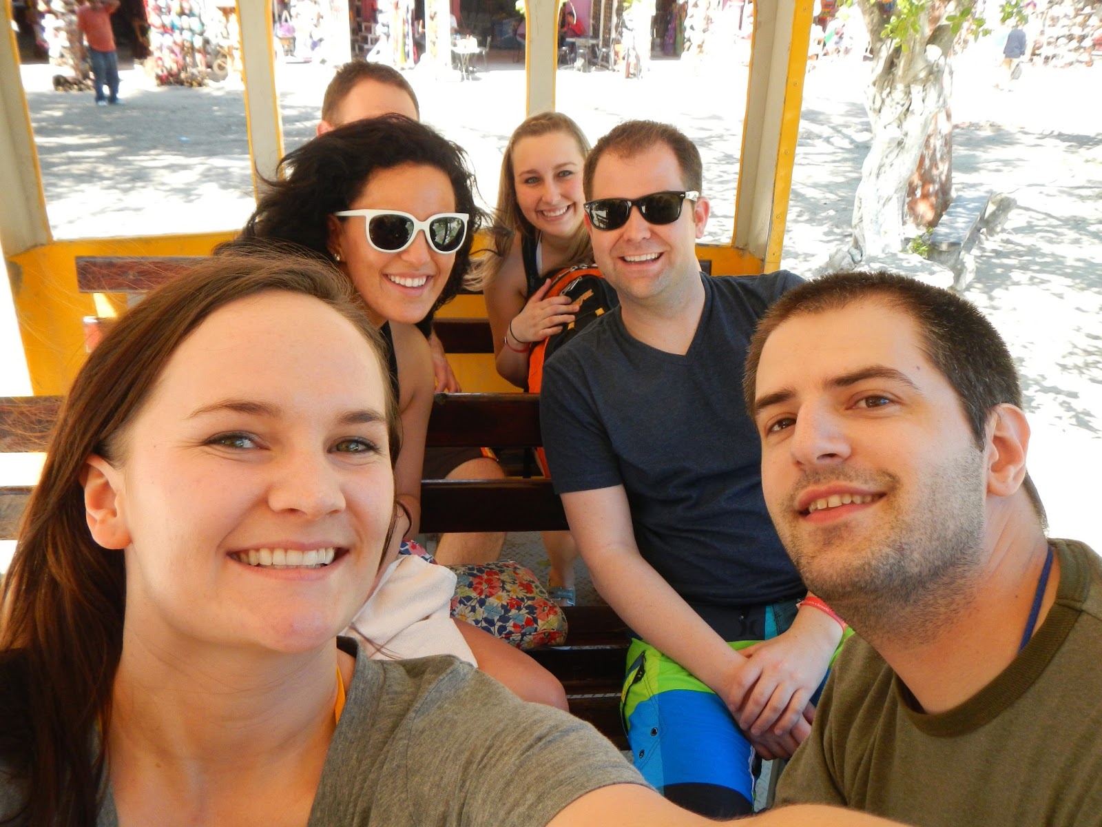 | Friendsies on the shuttle from parking to the ruins at Tulum. |