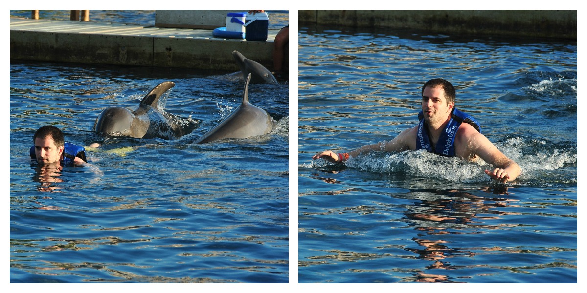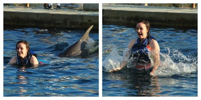 | I was a little nervous at first. Even though I’ve always wanted to swim with dolphins in the water they look a whole lot like sharks, something I’m pretty scared of. |
