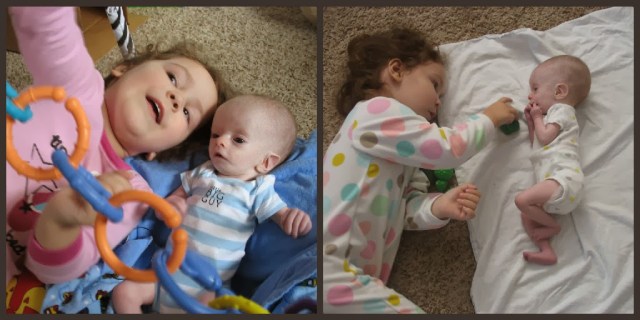 Noah and Aurelia are buddies 🙂 She likes to help his home health visitors do his check-ups and therapy, then do it herself later 🙂 Each night before bed they have snuggle time together while we talk about the day. She sings to him ALL the time. He seems to be adjusting to how loud she is and she seems to be getting a little quieter 🙂