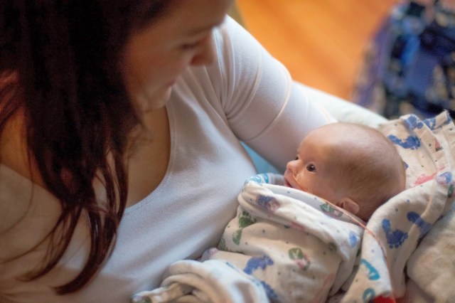 | He loved sitting in the corner of the couch, propped up with blankets. He loved being able to watch us move around the room 🙂 |