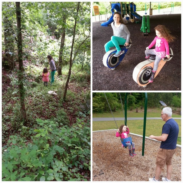 | Exploring grandma and grandpa’s backyard, playing at an AMAZING park near their home. |