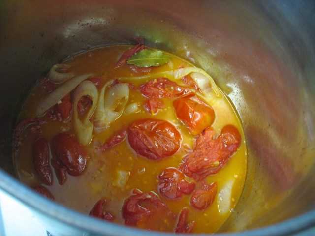 The tomatoes, onions and garlic baked for 20-30 minutes then went into the stock pot too.