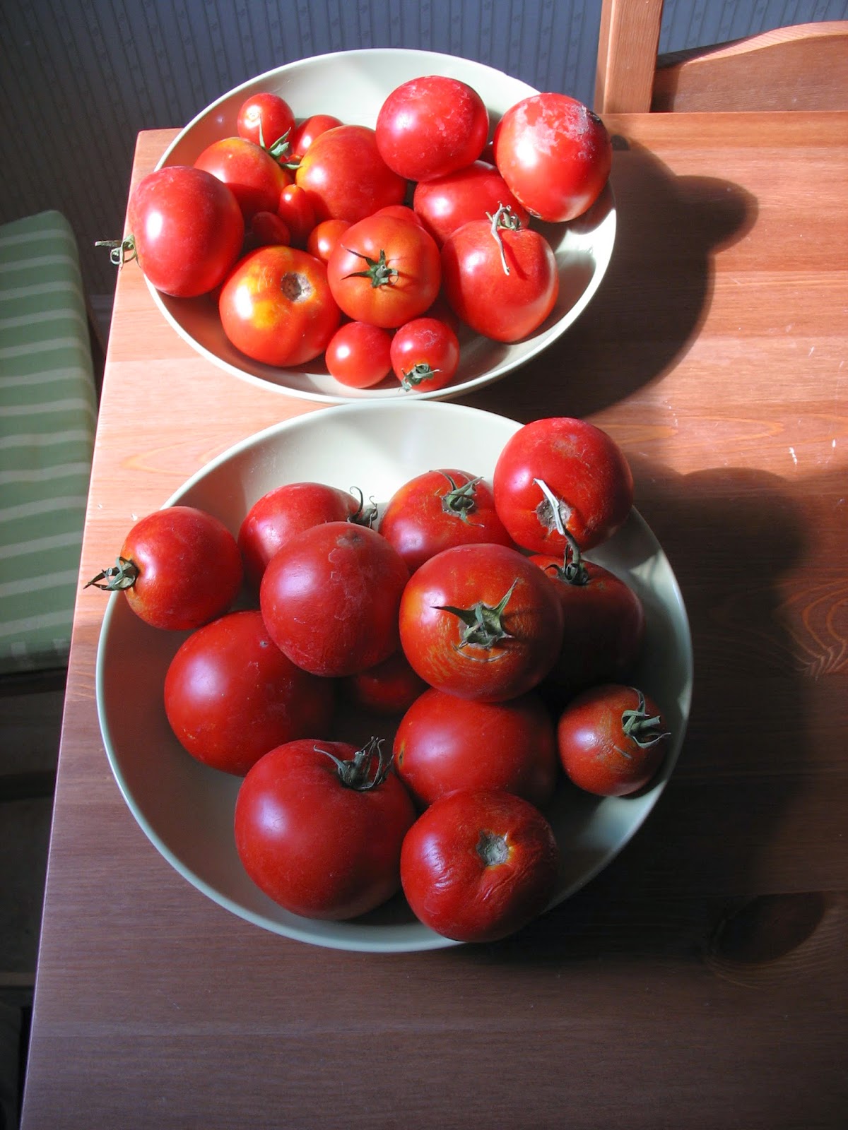 | Our tomato supply. Mostly Celebrity, lots of Cherry and Grape, a few Heirloom. |